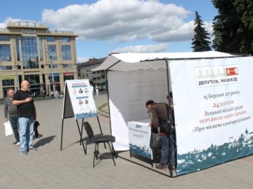 Як пояснив представник ініціативної групи, таких палаток у місті стоятиме кілька, в найбільш людних мікрорайонах. З його слів, лучани схвально сприйняли ідею й охоче ставлять свої підписи, але багато з тих, хто підходить до палатки і виявляє намір підтримати ініціативу, не має з собою паспорта.