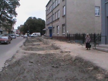 Заручниками безвідповідальності міської влади стали сотні пенсіонерів, які отримують пенсію у центральному відділенні міської філії Ощадбанку та працівники районної адміністрації, які щодня змушені добиратися до роботи по піску, що лишився на місці зруйнованого асфальту та знятої бруківки.