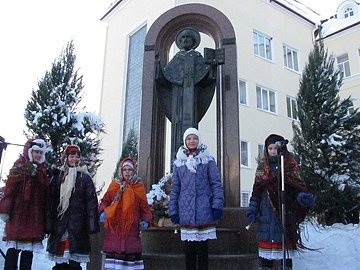 Біля пам'ятника святому Миколаю на вулиці Богдана Хмельницького діти співали пісні про Миколая та читали віршики.