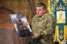 "Нехай цезнамено оберігає вас подалі у вашій нелегкій, але дуже почесній службі", - зауважили духівники. Далі прикордонників вітала волонтерка та литовська художниця Беата Куркуль, яка подарувала загону картину та зауважила, що залишить у Луцьку цілу виставку тематичних картин.