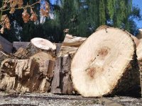 Деревину розпиляли на колоди 40-50 сантиметрів і склали у вантажівку, після чого розвезли за адресами.