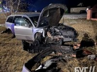 На Волині водій на швидкості влетів у острівок безпеки та зніс кілька знаків. ФОТО