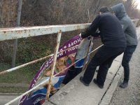 Із луцького мосту зняли рекламу, яка могла спричинити аварію