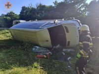 За словами очевидців, легковик заїхав на кільце і перекинувся, а водій з пасажирами втекли.