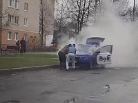 На бульварі Дружби народів в обласному центрі Волині зайнявся автомобіль популярної служби таксі