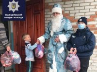 На Волині поліцейський офіцер громади у костюмі святого Миколая вітає дітей зі святами.