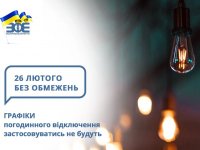 Орієнтовний час відновлення електропостачання: 02:00 26 лютого