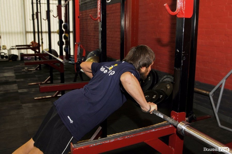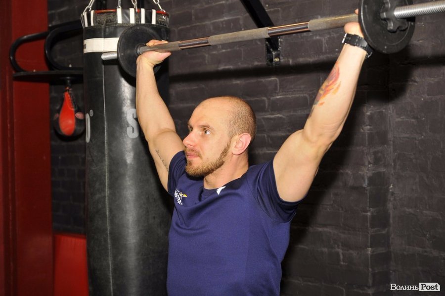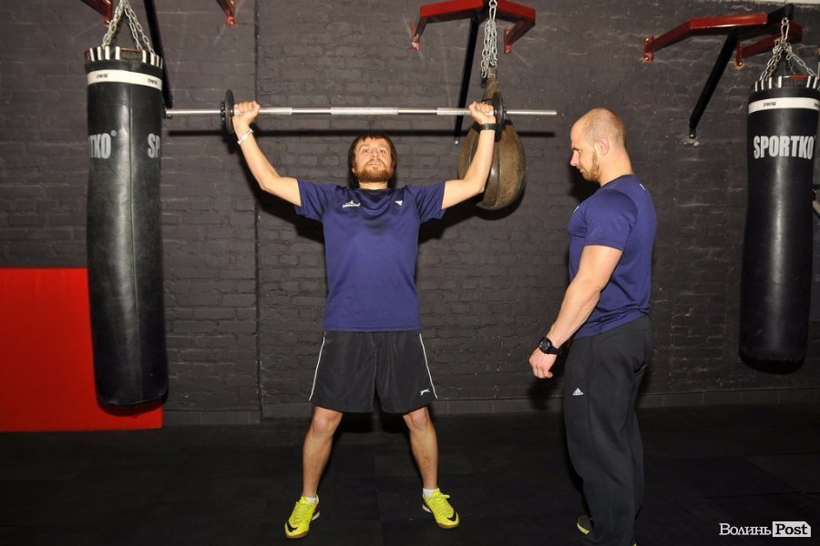 Завершальною вправою став жим штанги масою 20 кілограмів стоячи по 20 разів за підхід.