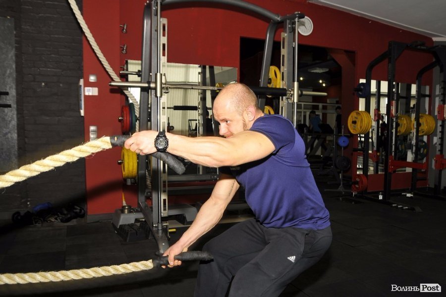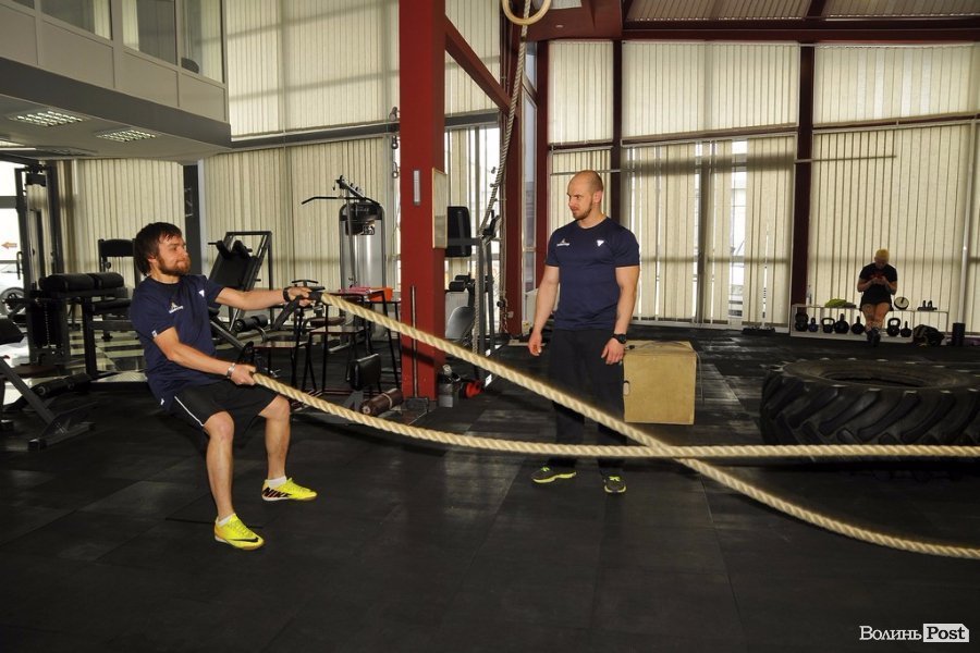 Після тренування Олександр розповів, що хоч тренується вже декілька місяців, все одна практично на кожному тренуванні Віталій знаходить для нього нові вправи. Цього разу це були підстрибування із підтягуванням колін та робота з мотузками.