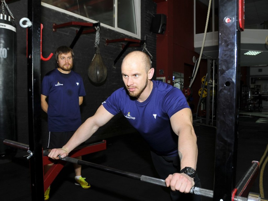 На сьогоднішньому занятті Олександр працював у стилі крос-фіт. віталій підготував традиційно насичену та активну програму, аби його підопічний зміг як слід розім'яти мускули.