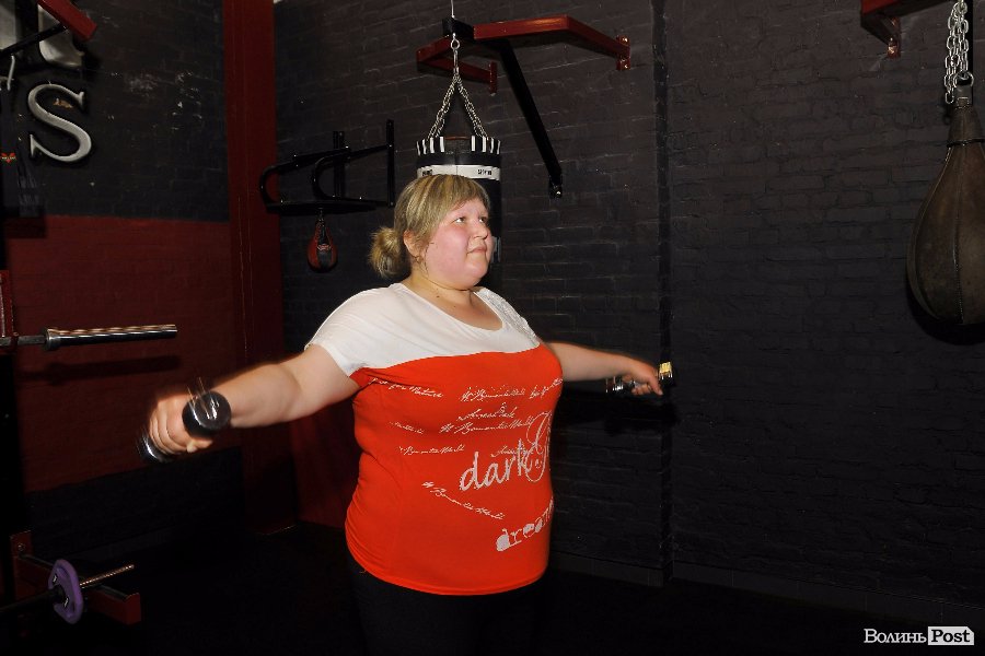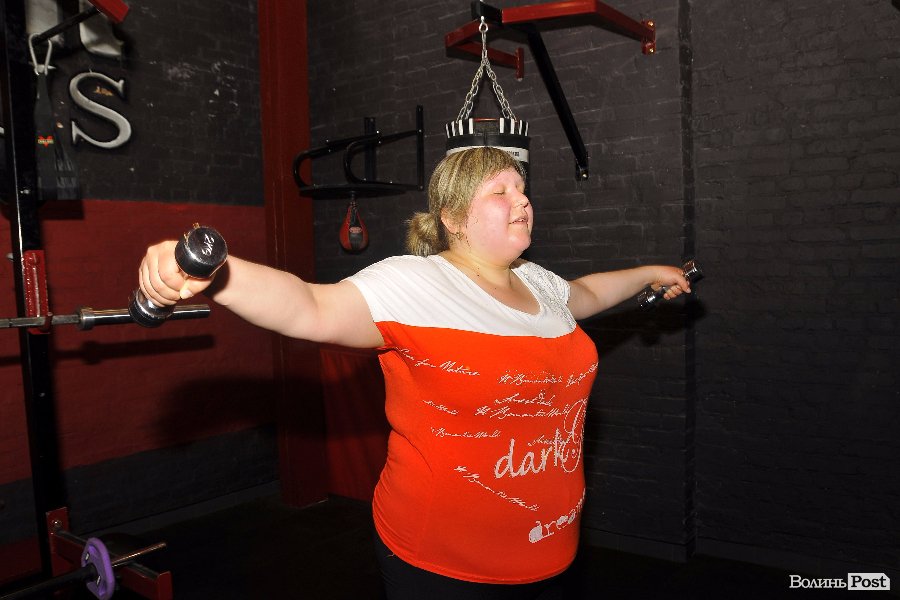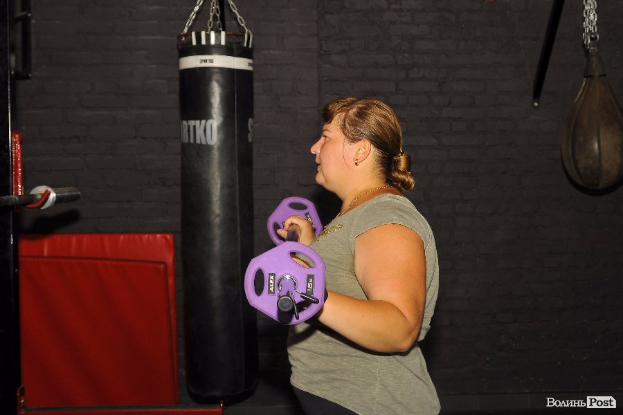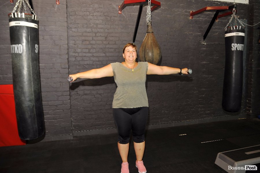 Дівчата робили махи руками з гантелями по 2 кілограми. Ця вправа вдалася їм не легко, довелося зібрати усі сили та завершити завдання.