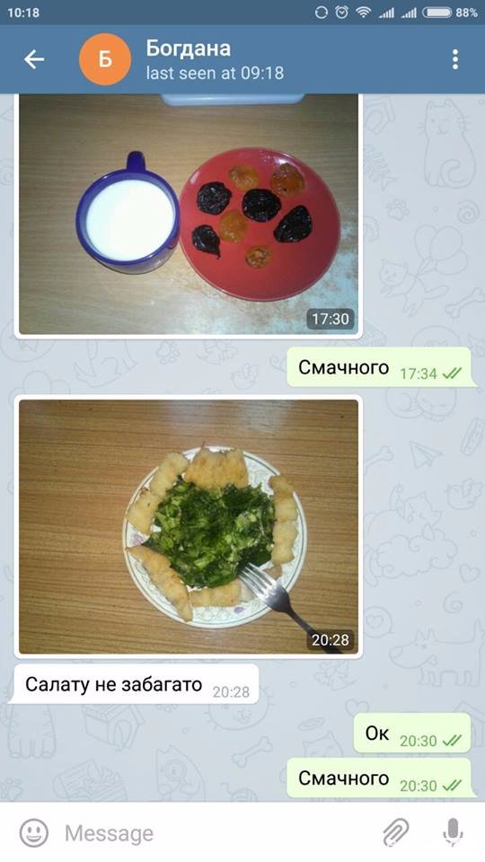 Опісля, вони пересилають фото своїх порцій тренеру, звичайно в той час, який Віталій «приписав».