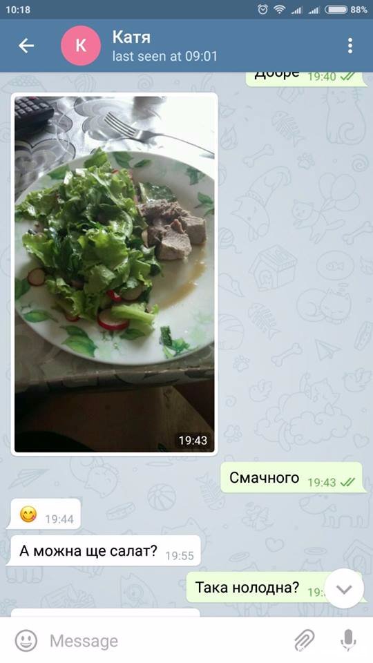 До слова, порції їжі дівча нагадують лікарняні порції, щоправда раціон у них смачніший.
