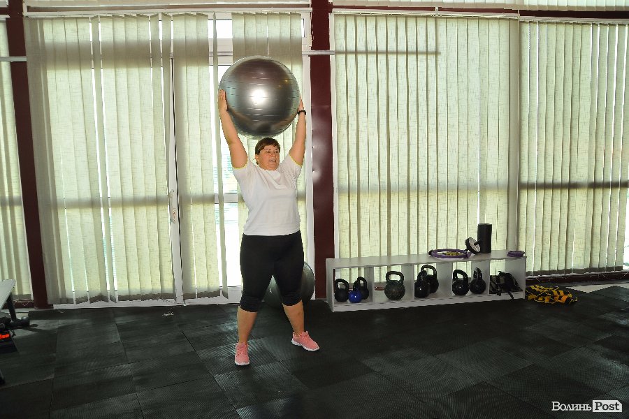 Опісля Андрейчук дав завдання з положення «присяд» підіймати з махом над головою спеціальний м'яч - фітбол.