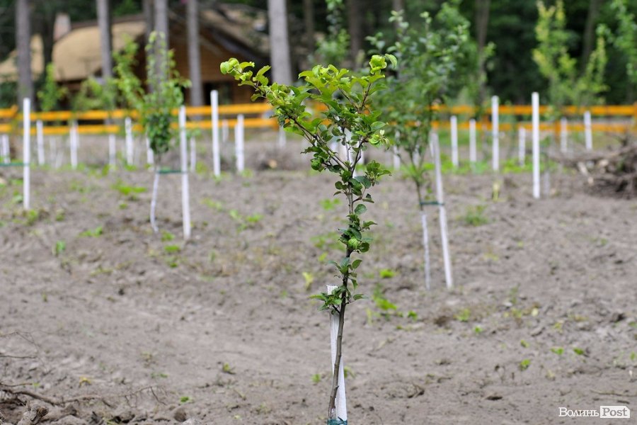 «Роботи почались ще минулої весни. Тут був старий фруктовий сад. Ми ці дерева зрізали і посадили новий. Територія нового саду - 0,6 гектара. Тут посаджені усі плодові дерева, які ростуть на території Волинської області. Також посадили 2 гектари чорного горіху», - розповідає Анатолій Іщик.