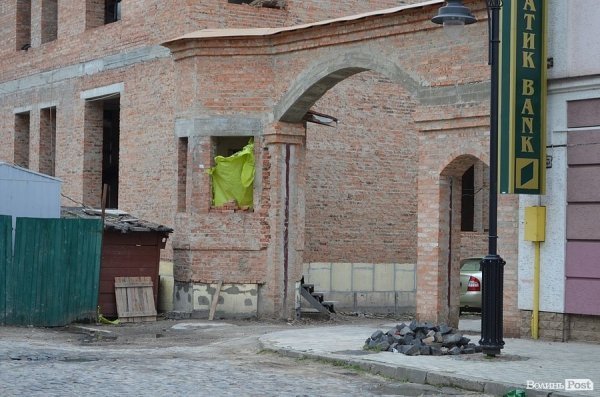 Паркан навколо ділянки з’явився ще минулого року, але роботи із будівництва ще не почалися, оскільки діє припис органу охорони культурної спадщини Волинської ОДА про заборону будівництва.