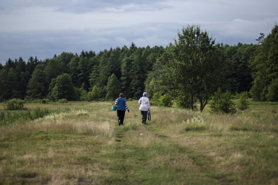 Відра Свєти й Тані повні до обіду, й вони їдуть додому доїти корову й порати по господарству, а по обіді знову вертаються в ліс з порожніми відрами. Якщо не завадить дощ.
