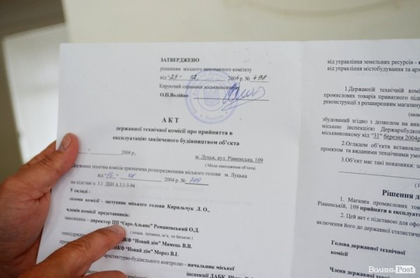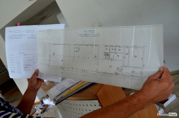 Романовський порівнює старий технічний паспорт приміщення з новим, зробленим у 2004 році після реконструкції: тримальні конструкції на місці, немає двох перегородок, є добудова