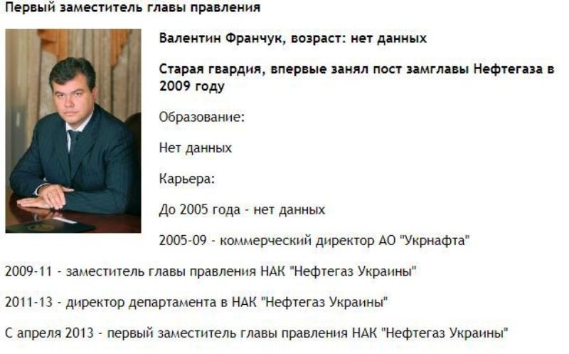 Із 2005 року Валентин Франчук – комерційний директор і фактично – права рука Ігоря Палиці в АТ «Укрнафта». Також він обіймав посаду голови правління нафтопереробного комплексу «Галичина». Як відомо, обидві компанії – у сфері впливу групи «Приват» та Ігоря Коломойського.