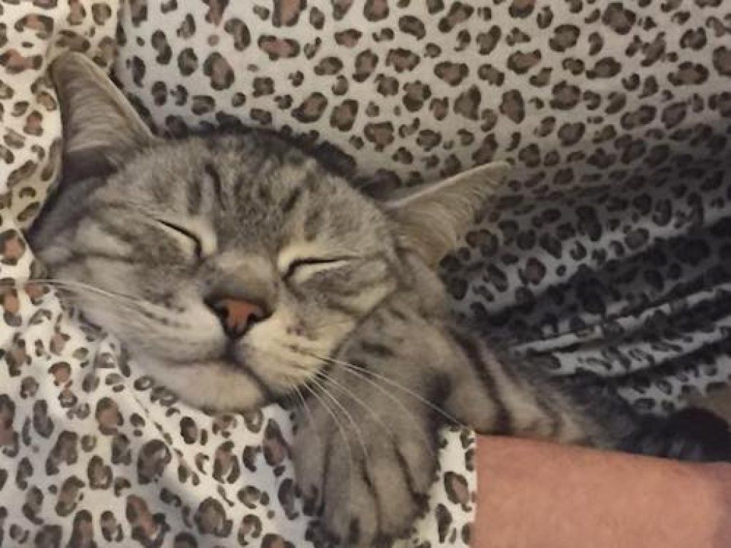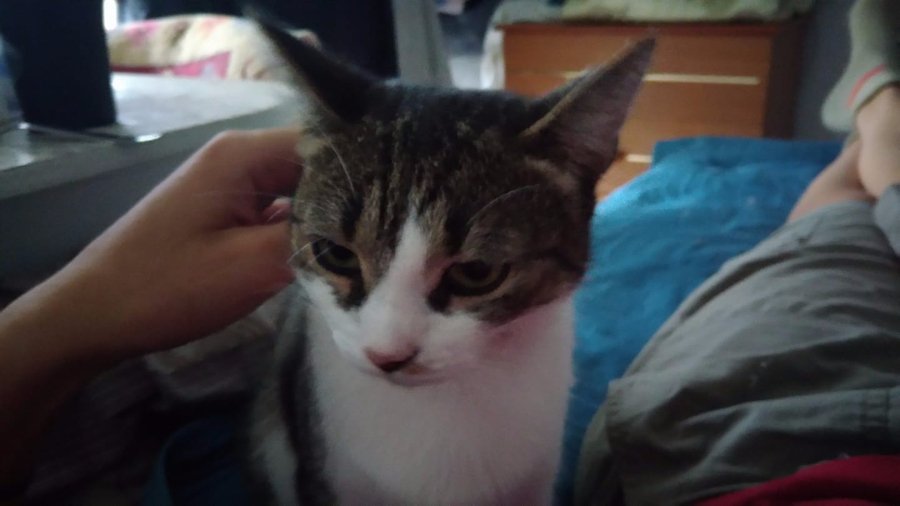 «Соня. Повне ім'я Фрау Фанні Мендельсон. Була помічена біля РАЦСу, шукала я її тижні два, бо зрозуміла, що треба кота рятувати. Зараз це теж сплошна котолюбов», - знайомить нас дівчина із ще однією врятованою твариною.
