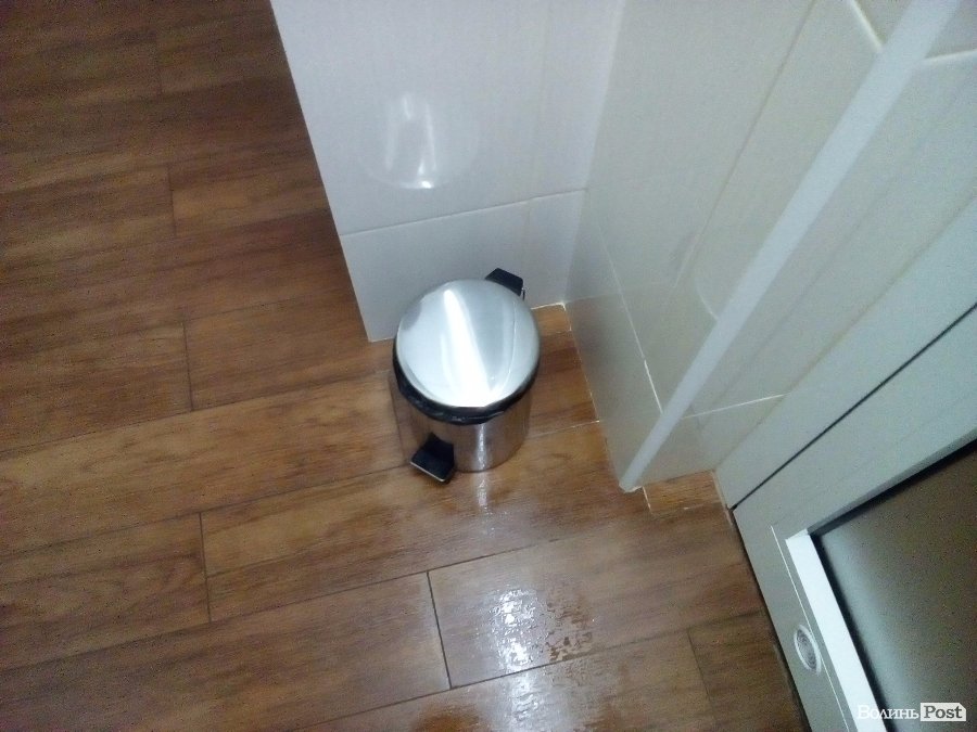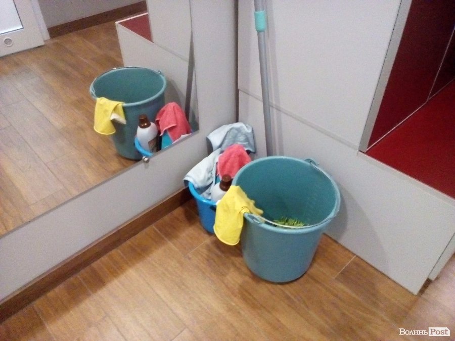 Не вписується у загальну картину інвентар прибиральниці: відро зі шваброю та хімзасобами стоїть відразу біля шаф.