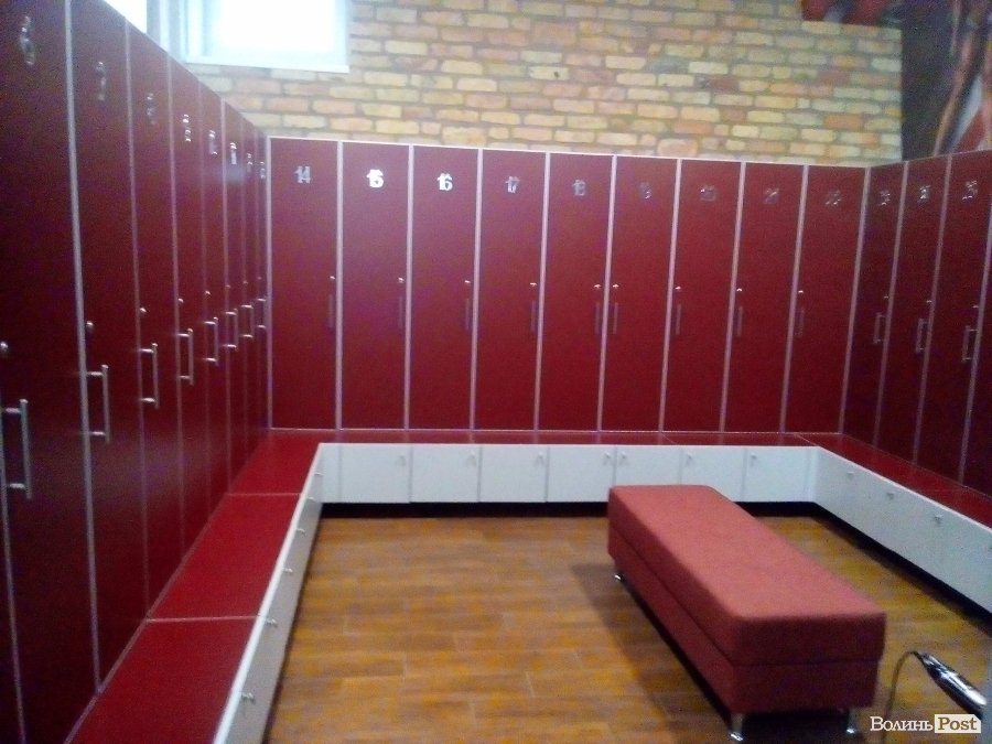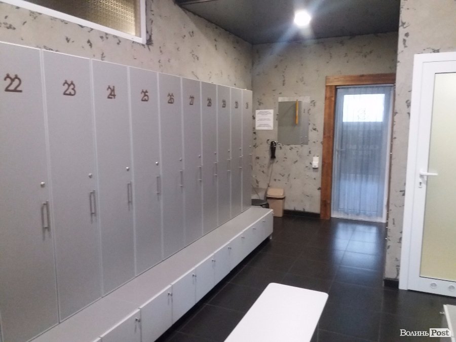 Шафи для одягу дуже зручні, а для взуття є окрема секція. Загалом обидві розраховані на понад 40 осіб. Цікаво, що для чоловіків передбачені лише лавки, для жінок розмістили диван.
