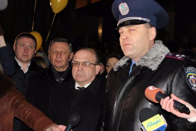 «Це – бруківка із київського Майдану, якою наші хлопці виборювали свою свободу. Якщо не помиляюся – безпосередньо з Голосіївської площі. Мені цей символічний подарунок вручили на віче, коли вперше виступав перед людьми як керівник міліції», – розповідав журналістам правоохоронець.