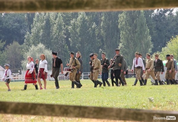 12.25. Молодь у повстанському одязі пройшлася центральними вулицями Луцька. Самі реконструктори кажуть, що на парад УПА реагували по-різному, усі розглядали сучасних упівців із подивом та зацікавленням.