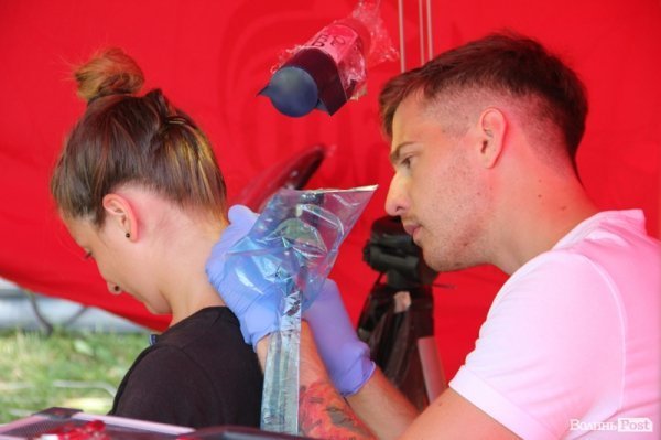 Вже третій день поспіль на "Бандерштаті" роблять патріотичне тату та боді-арт. На татуювання відважуються найбезстрашніші. За час фесту тату собі зробили більше десятка людей.