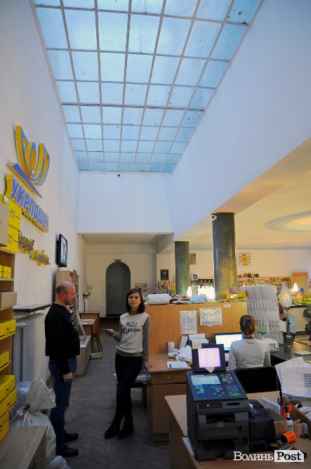 Приміщення, де знаходиться відділення №25 дуже давнє, воно навіть визнане пам'яткою архітектури. Стеля пошти скляна, стіни приміщення розмальовані одним із луцьких художників.