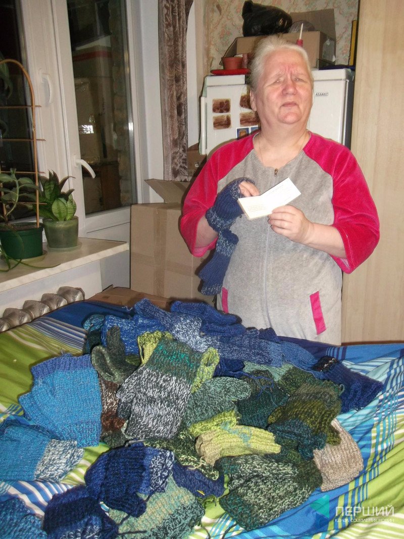 «Я з дитинства добре в’язала, тому одразу загорілась ідеєю їм допомогти. Спочатку виходило погано, та й ниток потрібних не було. Доводилось розплітати старі речі. Нині я наловчилась плести одну пару за день. А якщо точніше, за ніч, бо майже зовсім не можу спати. З нитками допомагають волонтери та небайдужі люди. Я щаслива, якщо мої рукавиці комусь з бійців врятували життя».