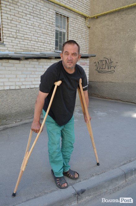 «В мене колись були, та їх потім забрали. А це мужчина побачив в інтернеті та й приніс мені костилі. Я тільки що забувся, як звати його. Сам він родом із Володимира-Волинського, а тут в Луцьку живе», - показує Іван Стасюк нове надбання. З милицями стало трохи легше, тому тепер безхатько ходить по кілька годин на день чи повільно кульгає до магазинчиків поблизу, аби винести сміття.