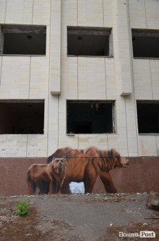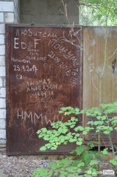 На кількох будинках намальовані сучасні графіті, які наганяють ще більше моторошності. Подекуди можна зустріти радянські написи типу «Слава Леніну» на дахах багатоповерхівок, чи плакати «Учиться, учиться, учиться», які розкидані у будівлях.