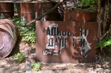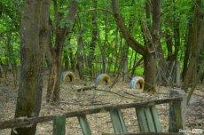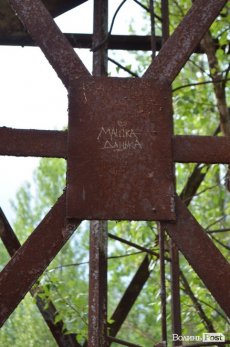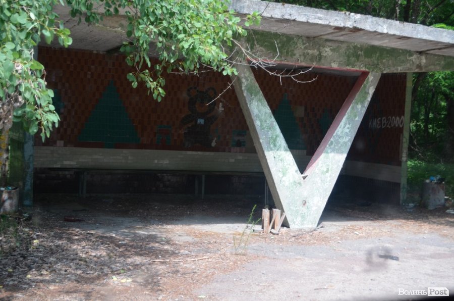 Поблизу Чорнобиля є непримітний поворот у ліс. Збоку викладеної широкими плитами дороги стоїть розвалена зупинка, на стіні якої намальований усміхнений олімпійський «Мішка».