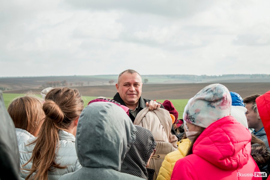 Дорогою до села Угринів Горохівського району разом з учнями луцької школи, які їдуть побачити завод, та очільником підприємства Андрієм Тураком раптом зупиняємося посеред поля. Справа в тому, що угринівський молокозавод має замкнутий цикл виробництва, тож на полях вирощують та заготовляють корми, якими годують своїх корів.