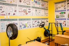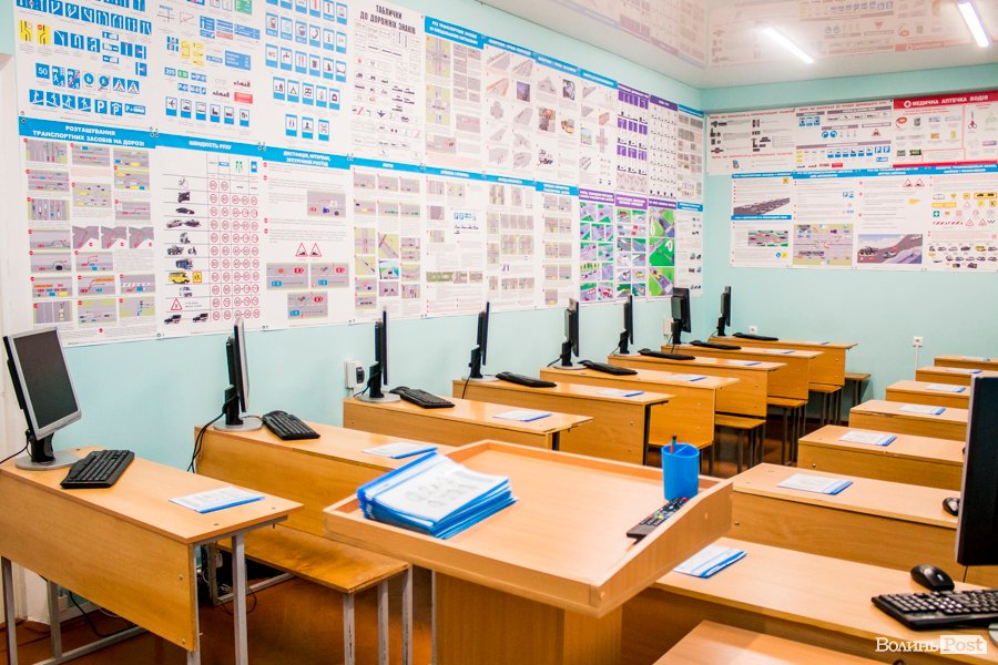 Учні навчаються у нових класах, обладнаних моніторами, комп'ютерами, макетами із зображеннями перехресть, агрегатів окремих механізмів транспортного засобу, необхідною літературою, плакатами та стендами. Під час навчання використовуються сучасні технології подачі матеріалу. Зокрема, відеоуроки та макети, за допомогою яких моделюються різні дорожні ситуації. Окрім того, після кожної теми учні перевіряють свої знання за допомогою тестів. Вивчення теоретичного курсу може відбуватися і дистанційно. Після кожної теми учень, який навчається вдома, проходить тести, здачу яких контролює викладач.