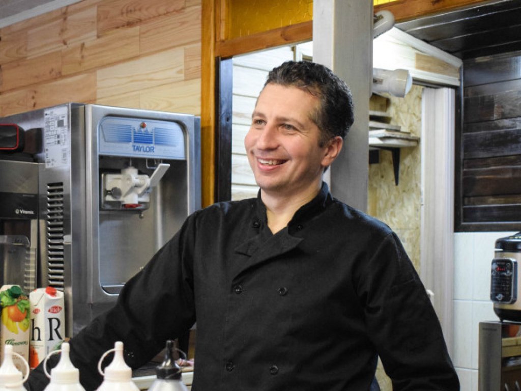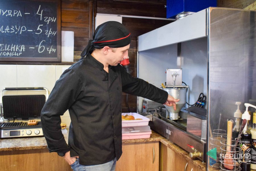 «Як добре, що ми його вчора помили», – жартує Володимир, вказуючи на апарат для приготування пончиків.
