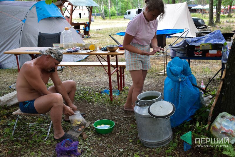Біля свого намету подружжя розгорнуло цілу польову кухню. Відпочивати з палатками вони люблять. А Світязь, на їхню думку, підходить для цього ідеально.