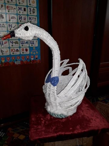 Вдома у лучанки величезна виставка її робіт. Це численні вази та підвазонники, кошики, черевики, капелюхи, лебеді, й усе – з паперових трубочок. Більшість своїх виробів жінка роздаровує.