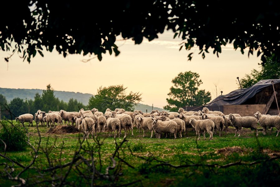 Дмитро і Вікторія починали з невеликої отари овець — всього 10 голів. Сьогодні вони мають понад 70 голів породи меринос. Господарі агросадиби кажуть, що ці вівці мають дуже м’яку і теплу вовну. З цієї вовни Радчуки роблять ковдри і подушки для садиби і на продаж.