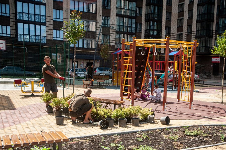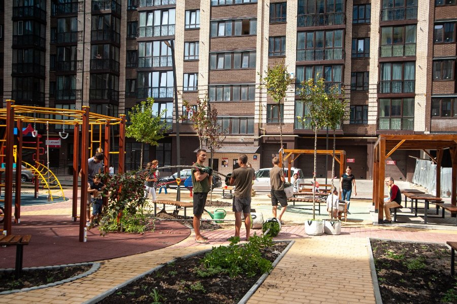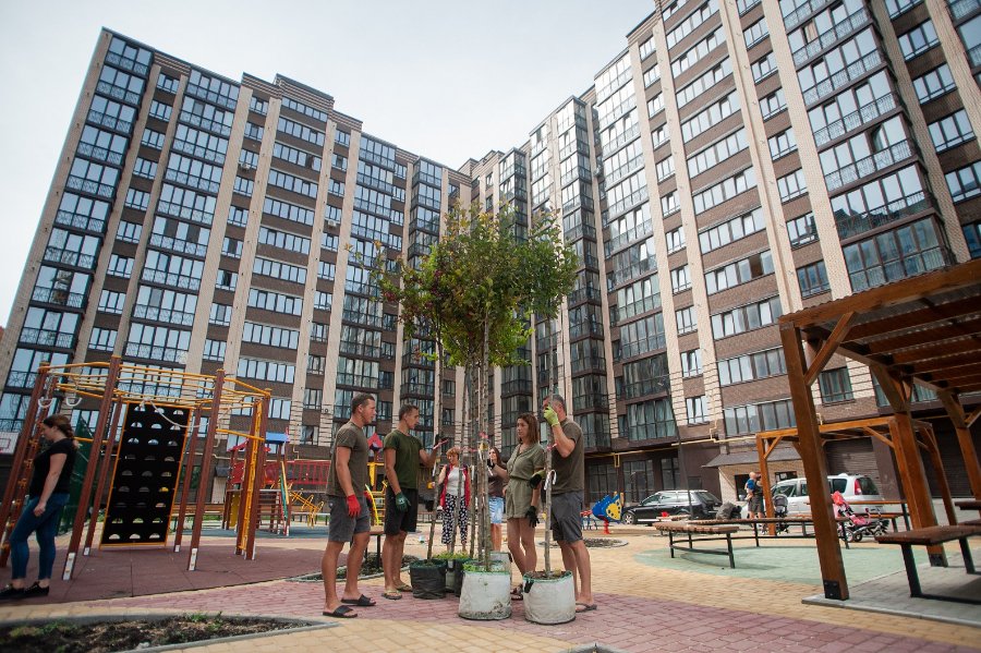 У суботу, 10 серпня, у житловому комплексі «Атлант» відбувся перший етап втілення проєкту унікального ландшафтного дизайну – висаджування рослин на прибудинковій території.