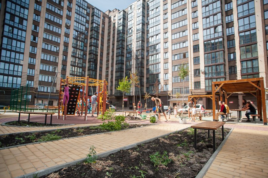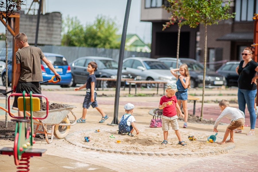 Для енергійних маленьких мешканців уже функціонує великий дитячий майданчик на території житлового комплексу. Тут часто можна зустріти мешканців із дітьми, а також з їхніми домашніми улюбленцями. Проєкт у майбутньому передбачає ще й спеціальні зони для прогулянок з домашніми тваринами.
