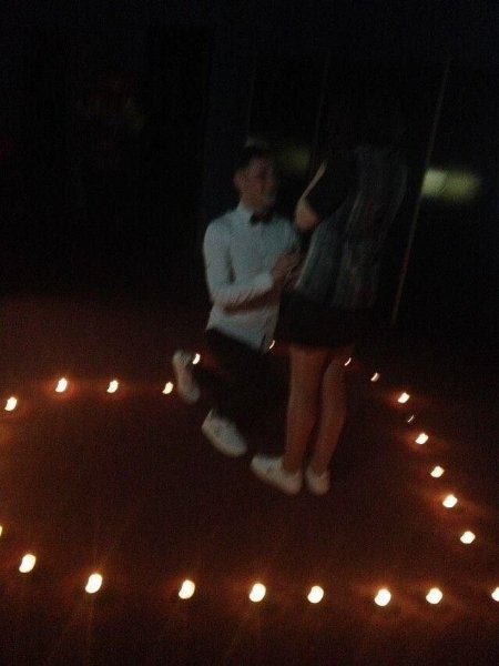 — Якогось дня Сергій зателефонував і сказав: «Збирайся, сьогодні ми зустрічаємося з друзями». Він мене повів у розважальний заклад, де обоє працювали (я була адміністратором, він — охоронцем). Мене трохи здивувало, що зібралися всі наші друзі в такому повному складі, ніби був якийсь привід. А він справді був, тільки я про нього, на відміну від присутніх, нічого не знала. Навіть тоді, коли подруга запропонувала вийти на вулицю і щось дуже довго мені розповідала, не здогадувалась, що мене чекає. Це згодом стало зрозуміло, що вона просто затягувала час. І ось коли через хвилин п’ятнадцять ми зайшли в приміщення, власне, подруга мене туди впустила одну, то потрапила в темноту, оскільки світло було вимкнено. І побачила серце, викладене на підлозі свічками. А в центрі його стояв Сергій з квітами. Мене заводять у те серце. Мій коханий стає на коліно, і я чую слова: «Ти вийдеш за мене заміж?».