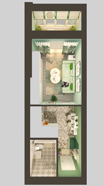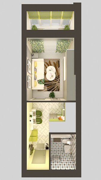 Простору вітальню та кухню-студію на 30 м2 можна перетворити у дві окремі повноцінні смарт-квартири з окремими санвузлами, балконами і спільним коридорчиком. У такому разі, купуючи однокімнатне помешкання на 70 «квадратів» за 30 тисяч доларів, власник отримує дві квартири у новобудові по 15 тисяч доларів за кожну. «Квартири можна перепланувати «під себе» і створити власне ідеальне помешкання, простору для фантазії і експериментів – достатньо», – каже керівниця центру продажу.