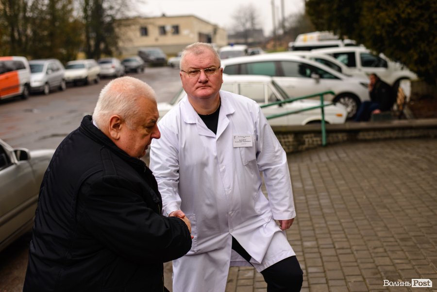 На порозі, зустрічаючи, вишикувалися декілька медиків на чолі з головним лікарем Олександром Клачуком.