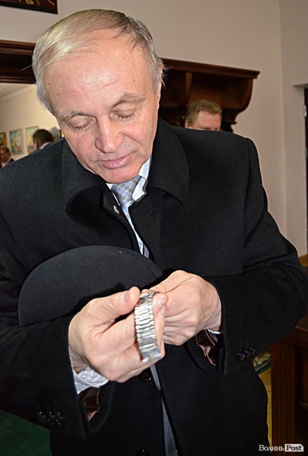 Цей депутат-доцент кафедри Луцького національного технічного університету останнім часом годинник не одягає. Раніше носив годинник, подарований облдержадміністрацією.