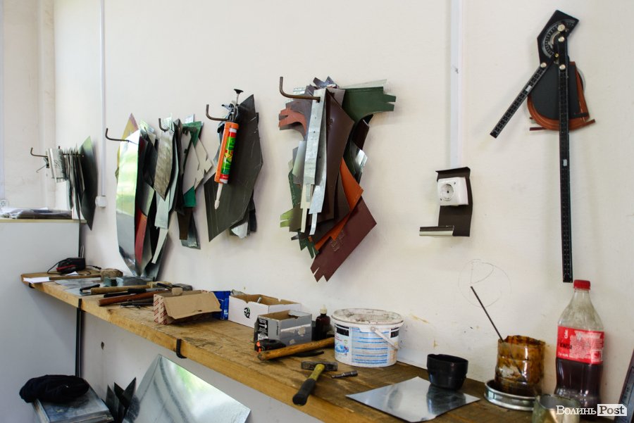 «Це мій основний робочий інструмент – молоток і киянка. З того воно колись все і починалося. Зараз фірма іде вперед, є різні станки, які ріжуть, згинають. Але я звик багато чого робити вручну», – розповідає бляхар, демонструючи інвентар.