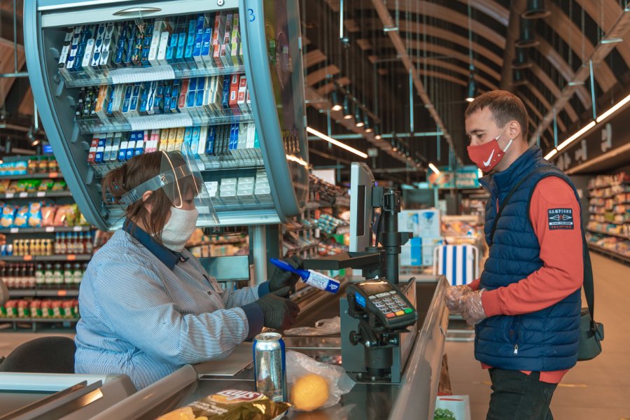 Персонал кожного супермаркету торговельної мережі перед початком робочого дня проходить температурний скринінг. Касири обов'язково працюють у захисних масках, окулярах, рукавичках і скляних щитках. Так, це не дуже комфортно і не особливо естетично виглядає, однак важливо для безпеки співробітників. Через кожну касу магазину щодня проходять тисячі покупців, тому ризик для всіх контактуючих сторін важливо мінімізувати.