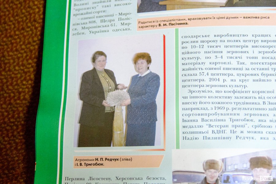 Повертаємося до контори. Іванна Василівна гортає тут старі фотографії, продовжує ділитися спогадами. На полиці її кабінету, окрім стосів паперу, – зразки насіння.