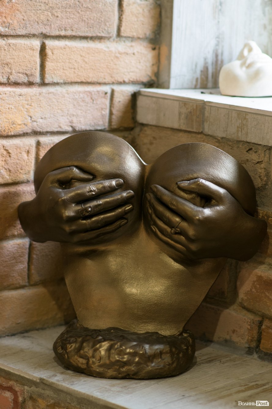 – Більшість скульптур створювала за допомогою спонтанних моделей, але були й такі, що потребували підбирання людини з конкретним типом фігури. До прикладу, для скульптури оголеного бронзового жіночого тіла я вибирала дівчинку разом із фотографом, що спеціалізується на фотосесіях ню, він допомагав вибрати модель, пропонуючи свої варіанти. Також для фігури чоловічого торсу ми вишукували луцького культуриста, чоловіка потрібно було добряче повмовляти, що, як бачите, в нас все-таки вийшло.
